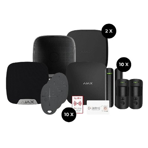 Hos CA Sikring tilbyder vi tre gennemtestede Ajax-pakker, der kan tilpasses og udvides, så de passer til din boligtype og sikkerhedsbehov. Alle vores alarmpakker indeholder de vigtigste komponenter: hub, sensorer og sirene. Forskellen ligger i rækkevidde og funktioner.